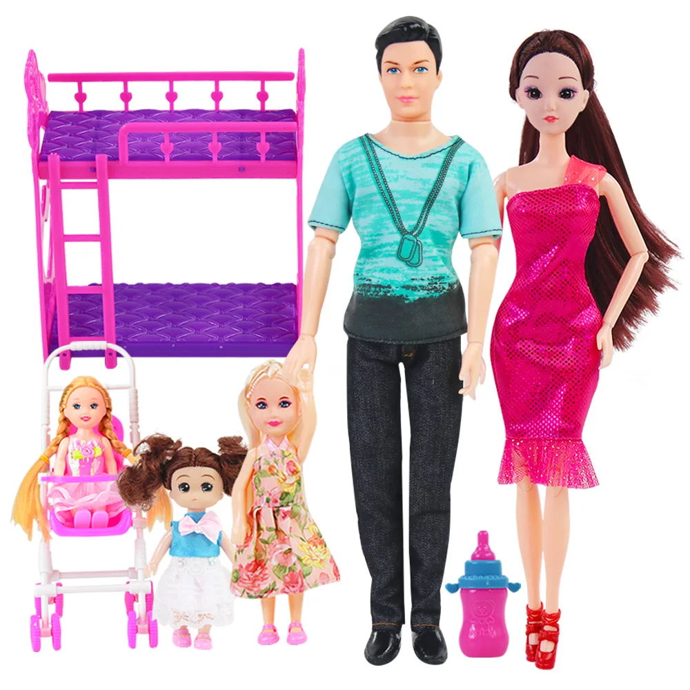 Doll Set Family 4 People Baby Toy Suit 1 Mom Dad Son Daughter Pet Dog FashionKid Toys For Children With Accessories :Click Here