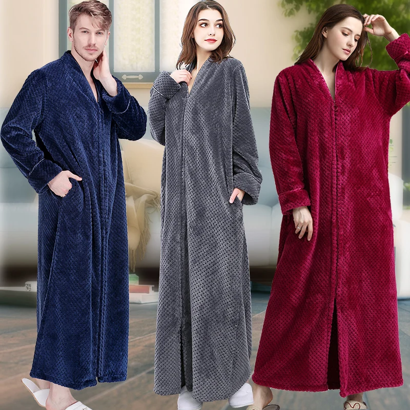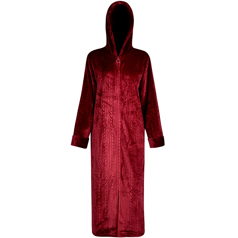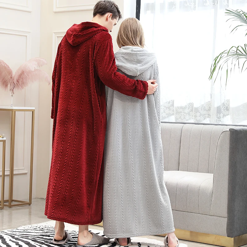 Popular Product Women Winter Plus Size Long Warm Flannel Bathrobe Bride Cozy Hooded Bath Robe Pregnant Zipper Night