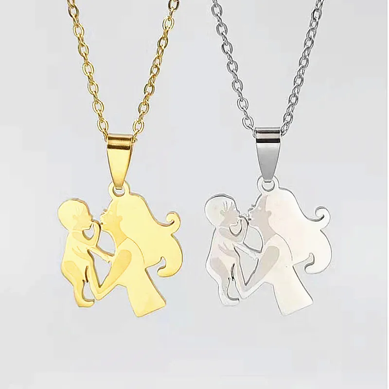 Simple Stainless Steel Necklace Mother and daughter Pendant charm necklace fashion Men and women Mother's Day jewelry gift :Click Here