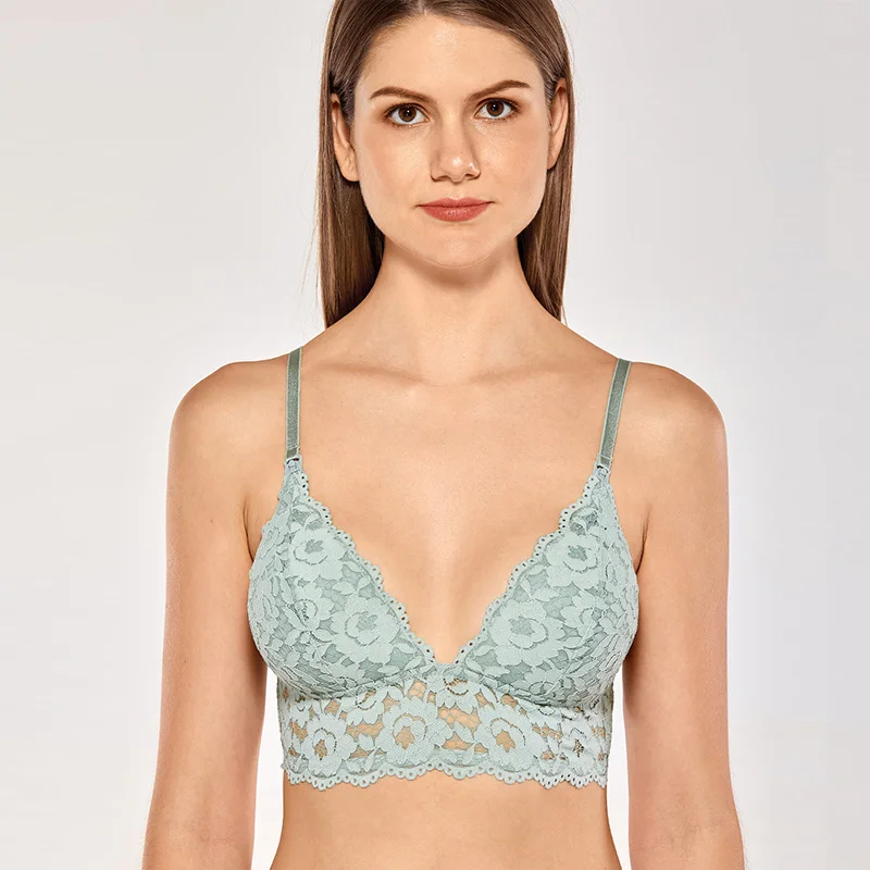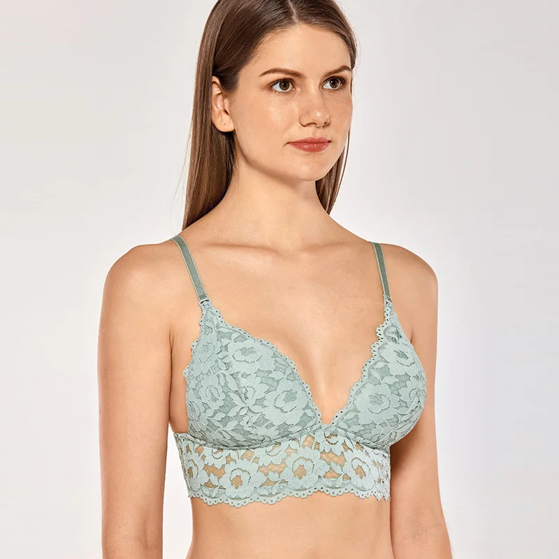Women's Wire Free Deep V Lightly Lined Nursing Lace Bralette Racerback :Click Here
