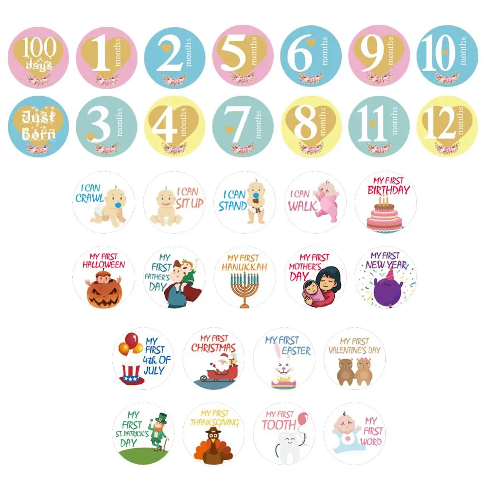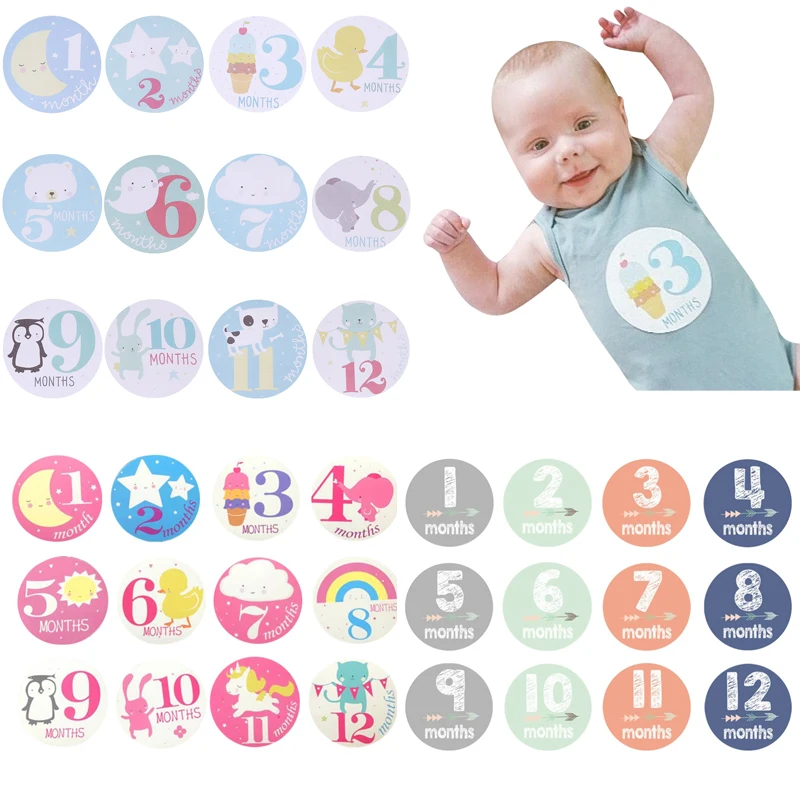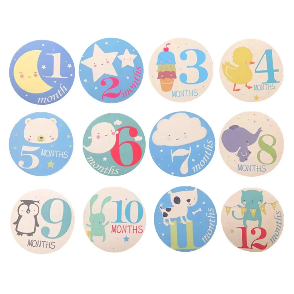 The Latest Monthly Photograph Stickers for Baby Pregnant Women Fun Lovely Cartoon Pink/Blue 1-12 Month Milesto